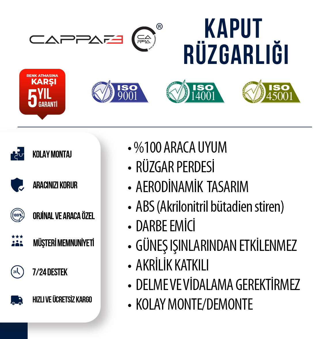 Fiat Doblo 2023- Yılı ve Sonrası Uyumlu Kaput Rüzgarlığı 3mm